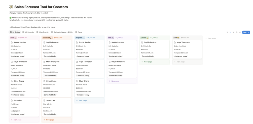 ✅ Whether you're selling digital products, offering freelance services, or building a creator business, this Notion template helps you forecast your revenue and hit your financial goals with clarity.